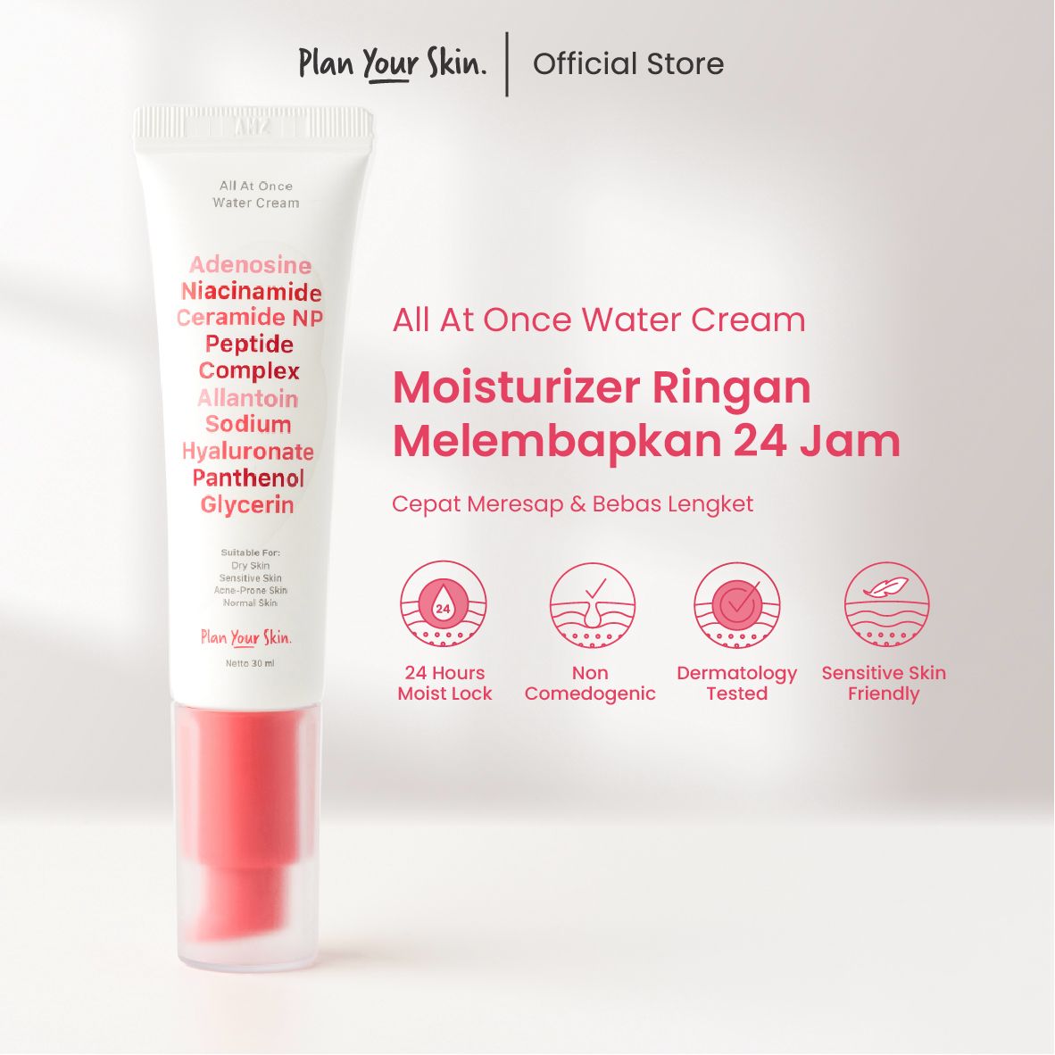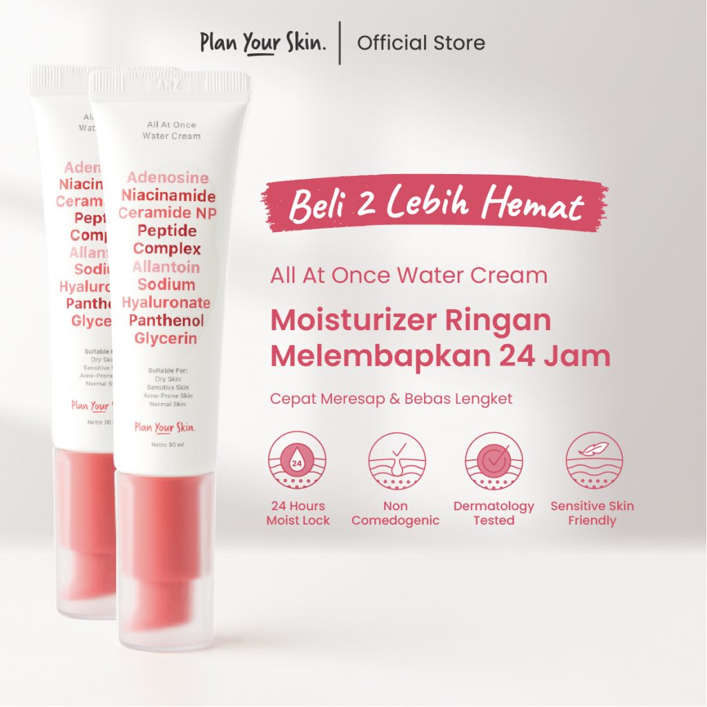 Water Cream Moisturizer 30ml: Moisturizer Wajah Ringan Niacinamide & Ceramide. Mencerahkan, Melembapkan & Perkuat Skin Barrier Kulit Sensitif