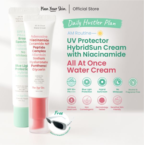![Daily Hustler Plan [FREE Kacamata]. Sunscreen SPF 50+ & Water Cream Niacinamide. Lindungi UV, Lembap & Cerah. Ringan Harian - Image 5](https://planyourskin.com/wp-content/uploads/2025/07/WhatsApp-Image-2025-06-17-at-14.52.30-300x300.jpeg)