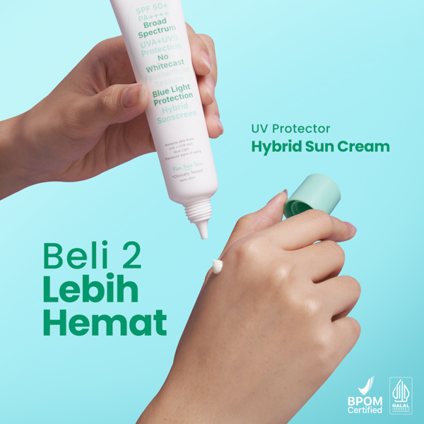 Sun protection you’ll actually want to wear. Our UV Protector Hybrid Sun Cream with Niacinamide combines the perfect synergy of the robust defense of physical blockers and the featherlight texture of chemical filters. The result? You get protection that absorbs instantly without the sticky feel or whitecast.